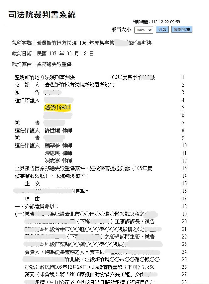 當事人被控業務過失致重傷,成功爭取無罪判決!