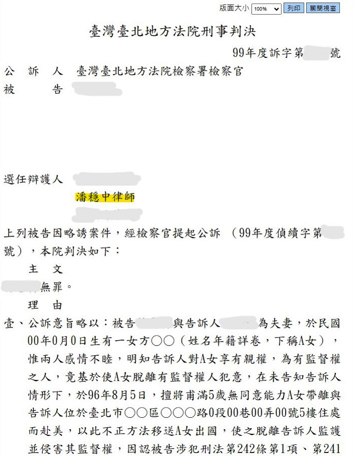當事人被控涉犯略誘罪,成功爭取無罪判決!
